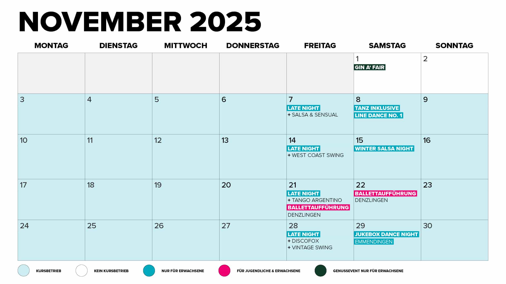 Kursfrei wegen der Konzerthausbälle